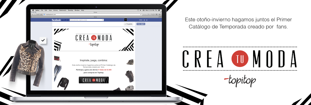A través de esta aplicación, alojada en nuestra página de Facebook, permitiremos que todos participen armando sus propios looks para la campaña y experimentando con las prendas que lanzamos para la temporada. Los outfits más populares formarán parte del “Primer Catálogo Virtual hecho por los fans” y las mejores tenidas serán mostradas en nuestras tiendas; serán cuatro personas ganadoras quienes se llevarán cada una un vale por 250 soles. Esperamos que tú seas parte de nuestro catálogo. ¡Combina y juega con todas las prendas nuevas que tenemos para ti en esta temporada!