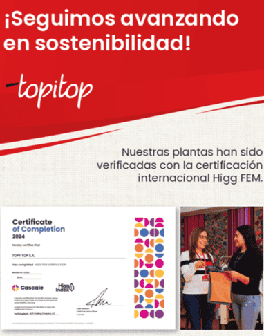 Basados en los valores que practicamos, conscientes de los impactos y los riesgos actuales que enfrenta el planeta, nos hemos comprometido a fomentar un futuro sostenible a través del desarrollo de productos y procesos sostenibles a lo largo de toda nuestra cadena de valor. Buscamos con ello generar un impacto positivo y contribuir al desarrollo de una sociedad más equitativa y consciente del cuidado ambiental. Topy Top S.A. viene dando pasos importantes en temas de Sostenibilidad, basados en nuestra estrategia.