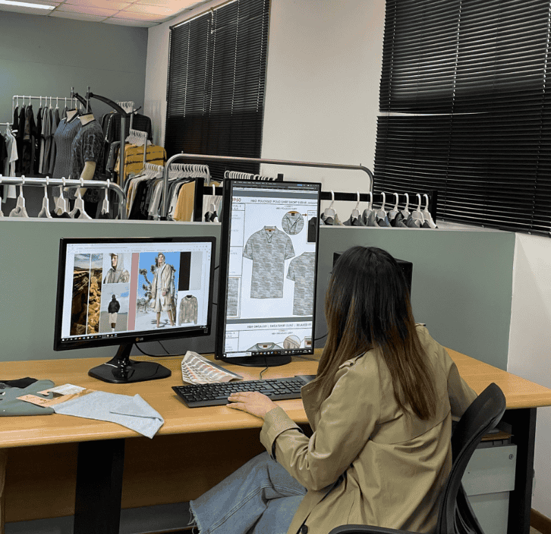 Producimos todo tipo de prendas en tejido de punto (tops y bottoms) para hombres, mujeres y niños, con una amplia variedad de telas regulares y sostenibles, aplicaciones, estampados, efectos de lavandería y acabados inteligentes.